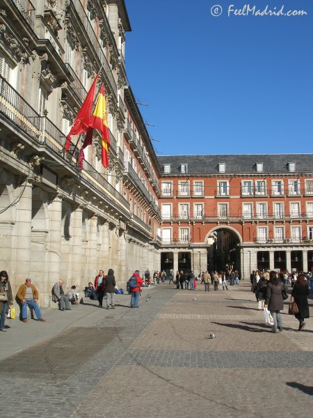 Plaza Mayor. A sunny day in the Plaza Mayor. The building on the left is the Casa de la Panaderķa. Date: March 8, 2007