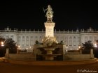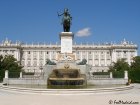 La fachada este da a la Plaza de Oriente con la estatua ecuestre de Felipe IV.