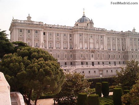 Vista del Palacio Real desde los Jardines de Sabatini en la cara norte.